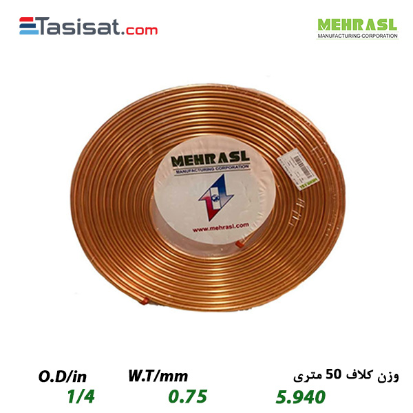 | مشخصات فنی لوله مسی . سایز/قطر لوله | 1/4" |